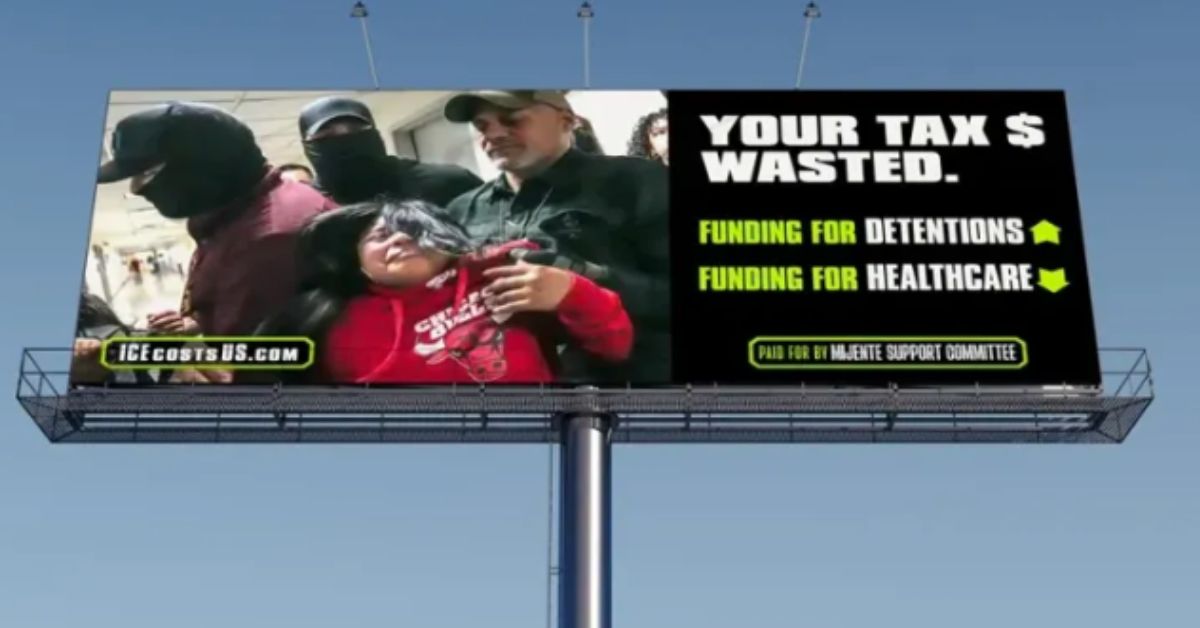 Los anuncios, visibles durante un mes en grandes ciudades como Chicago, Los Ángeles, Boston, San Antonio y Miami, muestran imágenes de agentes con equipamiento militar y detenciones de inmigrantes. El mensaje principal es claro: «Tus impuestos se destinan de forma inapropiada».