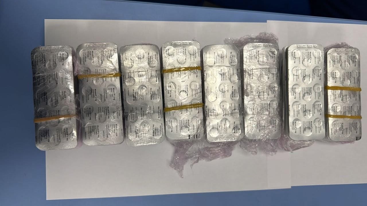 El detenido fue sorprendido intentando introducir ilegalmente un total de 2.400 comprimidos de Rivotril, un medicamento de uso controlado con potentes efectos psicotrópicos, ocultos entre sus pertenencias.