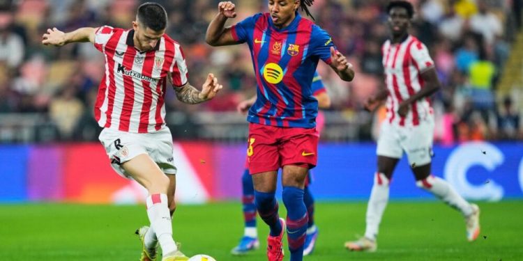 El Athletic inició el encuentro con intensidad, generando varias ocasiones peligrosas, entre ellas un disparo al palo de Sancet. Sin embargo, el control del partido fue perdiendo fuerza para ellos y a medida que avanzó el juego, el dominio del Barcelona se impuso. Después de varios intentos de Pedri y Fermín, el marcador se abrió en el minuto 22: Fermín no pudo concretar en una volea, pero Ferran Torres aprovechó el rebote para marcar el primer gol para los azulgranas.