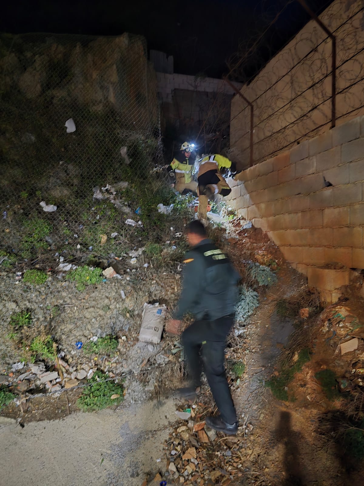 La perfecta coordinación en su búsqueda durante toda la madrugada por parte de las patrullas de tierra, un dron y las camaras termicas, dio sus frutos al localizar un punto de calor entre la maleza y alambres de espino, ya que el nadador quedó atrapado en el interior de una zanja de varios metros de profundidad donde cayó durante la huida, requiriendo la intervención de los bomberos para rescatarlo y trasladarlo al Hospital Universitario de Ceuta con hipotermia y tras haber sufrido varias heridas en la cabeza.