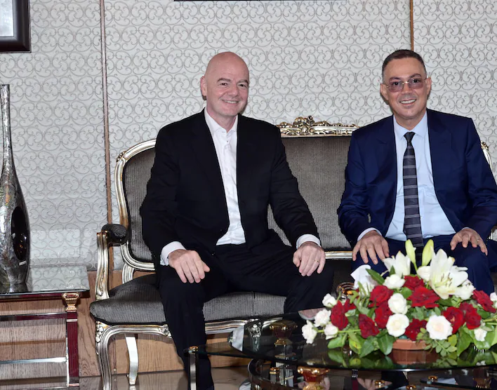 Infantino arribó al país el sábado 19 de julio, donde fue recibido por Fouzi Lekjaa, presidente de la Federación Real Marroquí de Fútbol (FRMF) y miembro del Consejo de la FIFA.