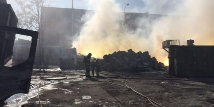 Incendio afecta una gran nave industrial en Griñón