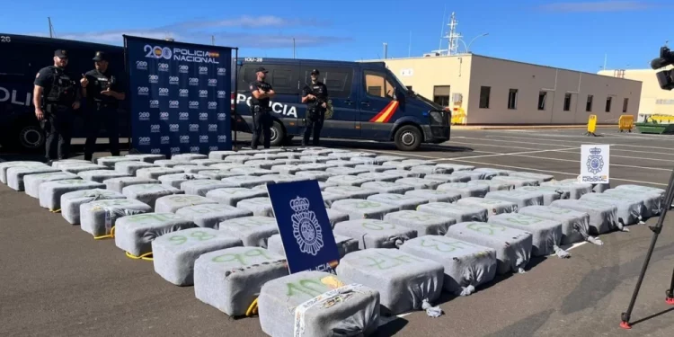 La Policía Nacional junto con la Armada Española detuvieron a 535 kilómetros de Canarias el mayor cargamento de cocaína incautado en alta mar por fuerzas europeas hasta la fecha. El buque United S, con bandera de Camerún, llevaba 9.994 kilos de droga, informaron las autoridades este lunes desde el puerto de Santa Cruz de Tenerife.
