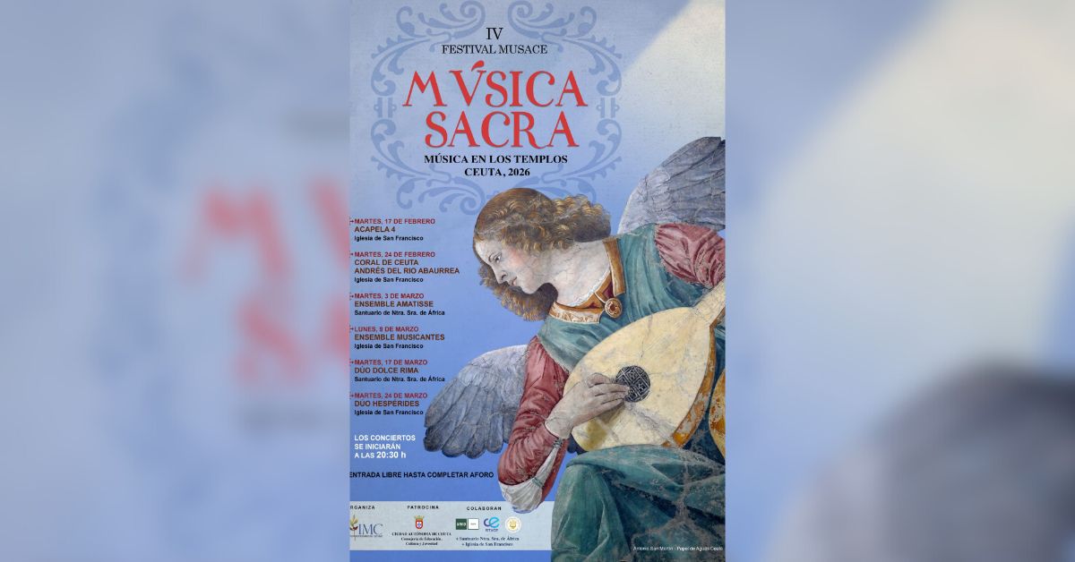 El festival de música sacra de Ceuta, MUSACE 2026, sigue adelante en su cuarta edición ofreciendo una propuesta de notable valor musicológico y artístico. El próximo martes, 17 de marzo, a las 20:30 horas, la Iglesia de Nuestra Señora de África acogerá un recital especial protagonizado por el dúo Dolce Rima. Con el título «Alla Madonna: Compositoras del Seicento Sacro», las intérpretes invitarán a un recorrido espiritual a través de las voces femeninas que reconocieron su talento en los conventos y salones del siglo XVII.