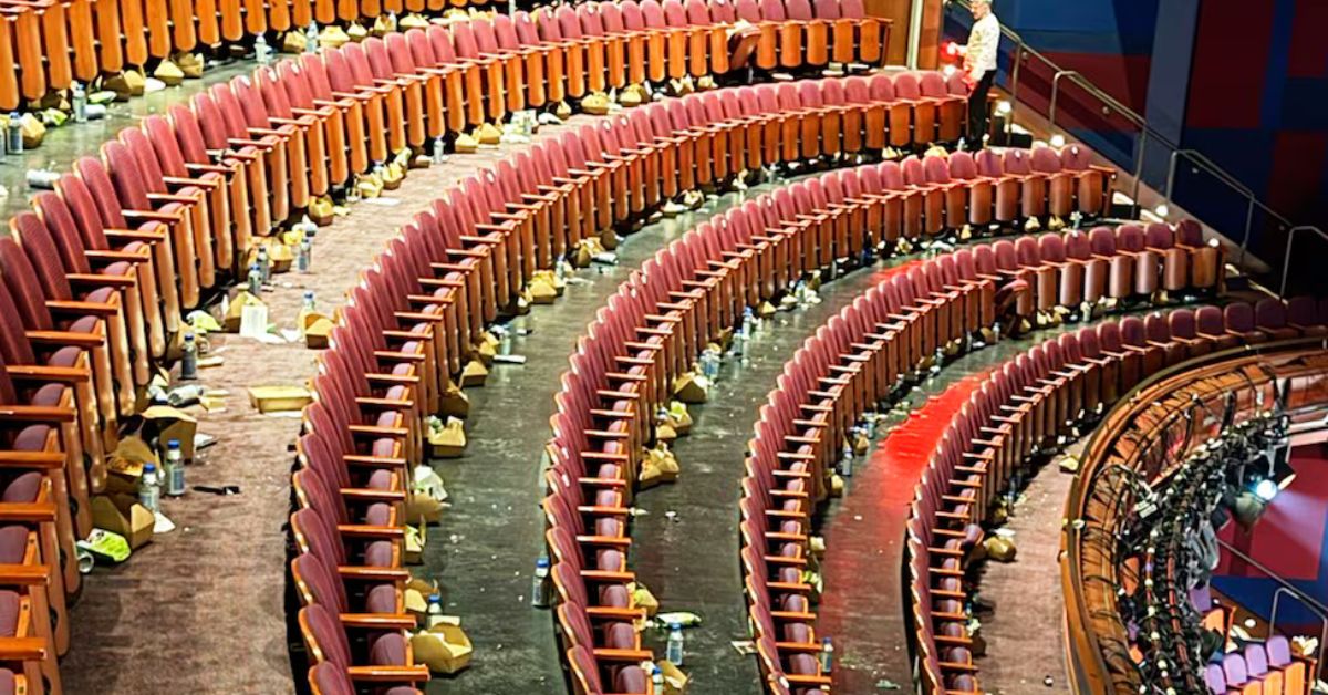 Una foto publicada en redes sociales, que revela las butacas vacías pero llenas de botellas, cubos de palomitas y empaques de comida, ha provocado numerosas críticas hacia la falta de respeto de algunas figuras destacadas de Hollywood.