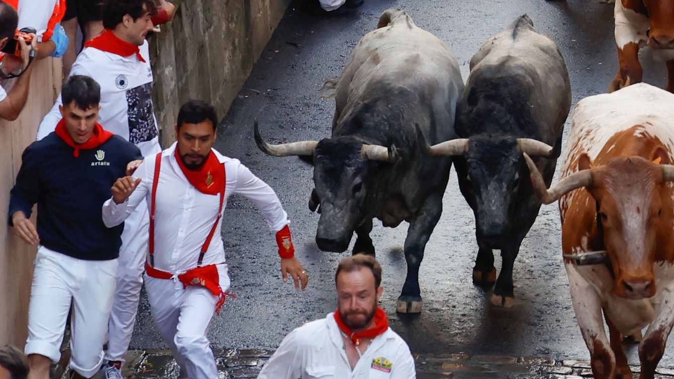 La carrera con los toros Miura, famosos por su fuerza y bravura, cerró unos encierros que han mantenido viva la emoción y tradición de San Fermín en las calles de Pamplona.