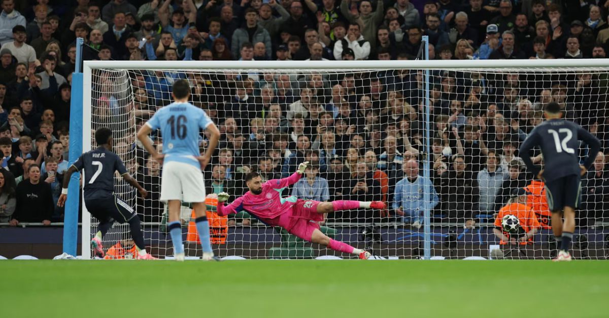 El VAR corrigió un fuera de juego mal señalado y el árbitro Turpin señaló penalti y mostró la tarjeta roja directa al jugador portugués. Vinicius no falló desde los once metros, silenciando el estadio y dejando al City con un jugador menos y en desventaja.
