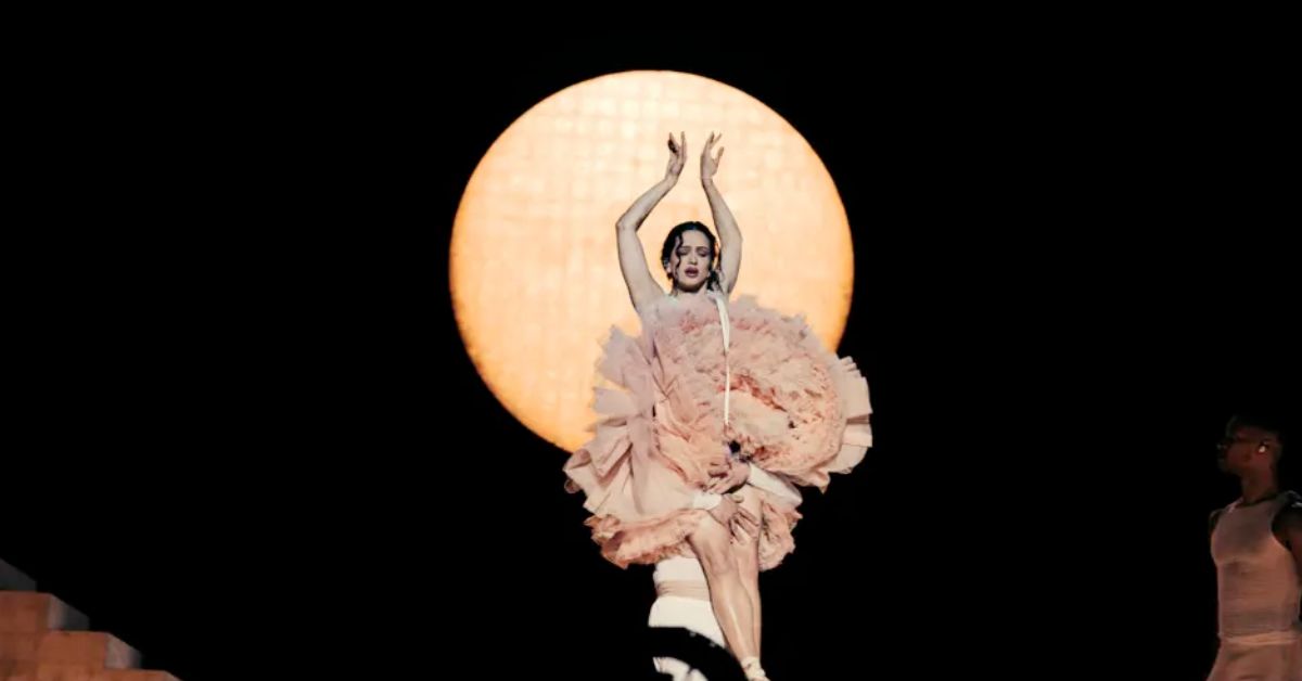 El concierto comienza con una referencia directa al ballet y la disciplina artística. Rosalía inicia la velada emergiendo de una caja, recreando la famosa escultura de Edgar Degas, ‘La Pequeña Bailarina de Catorce Años’, que se exhibe en la Galería Nacional de Arte de París. Vestida con un tutú liviano, interpreta temas como ‘Sexo, Violencia y Llantas’, ‘Divinize’ y ‘Reliquia’, simbolizando la exigencia corporal como medio de expresión creativa.