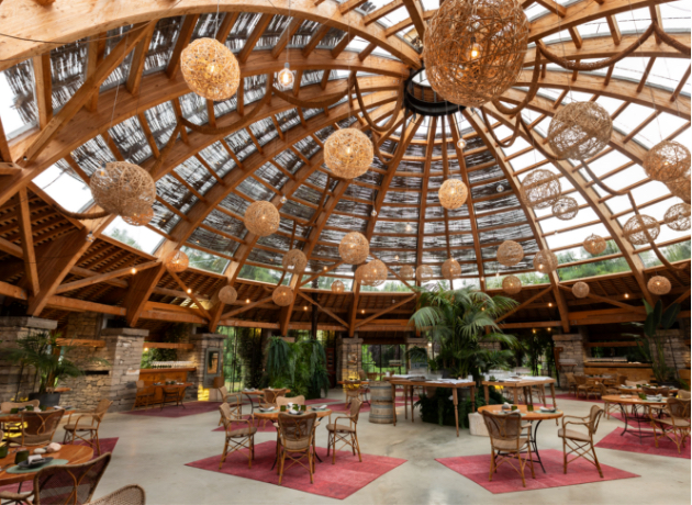La cúpula del Mas Marroch, considerada un modelo de arquitectura sostenible e ingeniería en madera, era uno de los emblemas más destacados del espacio donde se han llevado a cabo celebraciones, banquetes y eventos importantes, como la gala de entrega de las estrellas Michelin de 2016.